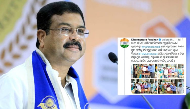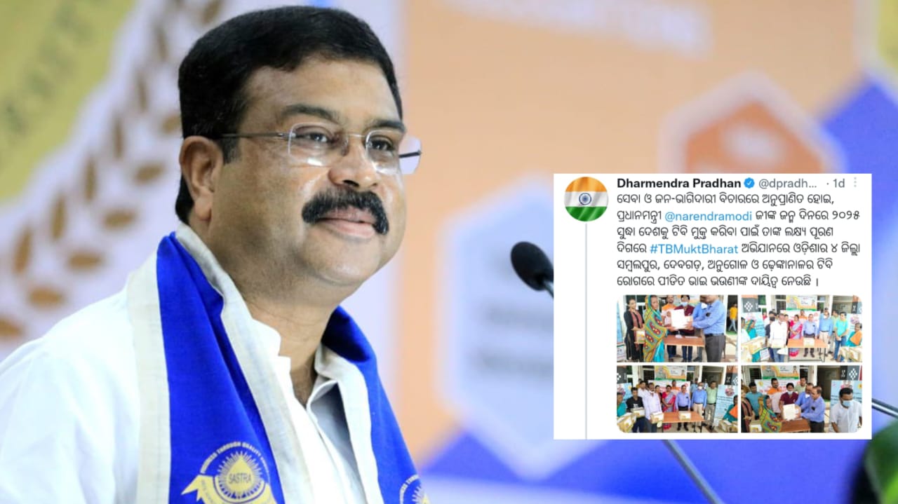 ତେବେ ଟ୍ୱିଟ କରି ଧର୍ମେନ୍ଦ୍ର ଜଣାଇଛନ୍ତି ” ସେବା ଓ ଜନ-ଭାଗିଦାରୀ ବିଚାରରେ ଅନୁପ୍ରାଣିତ ହୋଇ, ପ୍ରଧାନମନ୍ତ୍ରୀ ନରେନ୍ଦ୍ର ମୋଦୀଜୀଙ୍କ ଜନ୍ମ ଦିନରେ ୨୦୨୫ ସୁଦ୍ଧା ଦେଶକୁ ଟିବି ମୁକ୍ତ କରିବା ପାଇଁ ତାଙ୍କ ଲକ୍ଷ୍ୟ ପୂରଣ ଦିଗରେ ଟିବି ମୁକ୍ତ ଅଭିଯାନ ରେ ଓଡ଼ିଶାର ୪ ଜିଲ୍ଲା ସମ୍ବଲପୁର, ଦେବଗଡ଼, ଅନୁଗୋଳ ଓ ଢ଼େଙ୍କାନାଳର ଟିବି ରୋଗରେ ପୀଡିତ ଭାଇ ଭଉଣୀଙ୍କ ଦାୟିତ୍ୱ ନେଉଛି । ଜଣେ ନି-କ୍ଷୟ ମିତ୍ର ଭାବରେ, ଓଡିଶାର ଏହି ୪ ଜିଲ୍ଲାରେ ଟିବି ରୋଗରେ ଚିକିତ୍ସିତ ହେଉଥିବା ମୋର ଭାଇ ଓ ଭଉଣୀମାନଙ୍କୁ ସାହାଯ୍ୟ ସହଯୋଗ ଯୋଗାଇବି । ପ୍ରଥମ ପର୍ଯ୍ୟାୟରେ, ଟିବି ବିରୋଧରେ ଲଢ଼େଇ କରୁଥିବା ଆଜି ୭୨ ଜଣ ଭାଇ ଭଉଣୀଙ୍କୁ ପୁଷ୍ଟି କିଟ୍ ପ୍ରଦାନ କରାଯାଇଛି । “