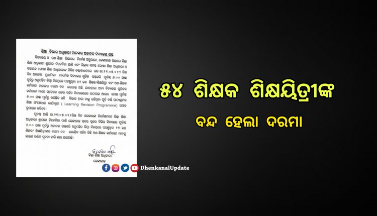 ବିଦ୍ୟାଳୟ ଓ ଗଣଶିକ୍ଷା ବିଭାଗର ନିର୍ଦ୍ଦେଶ ଅନୁଯାୟୀ ଢେଙ୍କାନାଳ ଜିଲ୍ଲାର ଶିକ୍ଷା ଅଧିକାରୀ ଶ୍ରୀମତୀ ନିବେଦିତା ପାଣି ଏବଂ ଜିଲ୍ଲାର ସମସ୍ତ ଗୋଷ୍ଠୀ ଶିକ୍ଷା ଅଧିକାରୀ ଓ ସହାୟକ ଗୋଷ୍ଠୀ ଶିକ୍ଷା ଅଧିକାରୀ ଙ୍କ ମିଳିତ ତତ୍ୱାବଧାନରେ ଗତ ତା ୨୧.୪.୨୦୨୨ ରିଖ ଦିନ ବିଭିନ୍ନ ଶିକ୍ଷାନୁଷ୍ଠାନ ଗୁଡିକୁ ଅଚାନକ ଗସ୍ତ କରିବା ସହ ସଠିକ ସମୟରେ ଆସିନଥିବା ୪୧ ଜଣ ଶିକ୍ଷକ ଶିକ୍ଷୟିତ୍ରୀ ଓ ଅଣ ଶିକ୍ଷକ ଙ୍କ ବିରୋଧ ରେ କାର୍ଯ୍ୟାନୁଷ୍ଠାନ ନିଆଯାଇଛି ।