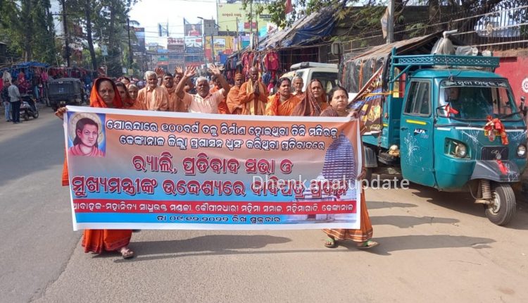 ଢେଙ୍କାନାଳ ଜିଲ୍ଲା ଯୋରନ୍ଦା ମହିମାଗାଦିରେ ବେଆଇନ ଭାବରେ ଉଚ୍ଛେଦକୁ ନେଇ କୌପୁନୀ ଧାରୀ ମହିମା ସମାଜ ତରଫରୁ ବିକ୍ଷୋଭ ଏବଂ ଶୋଭାଯାତ୍ରା ସହିତ ଏକ ଦାବିପତ୍ର ମୁଖ୍ୟମନ୍ତ୍ରୀଙ୍କ ଉଦ୍ଦେଶ୍ୟରେ ପ୍ରଦାନ କରିଛନ୍ତି ।