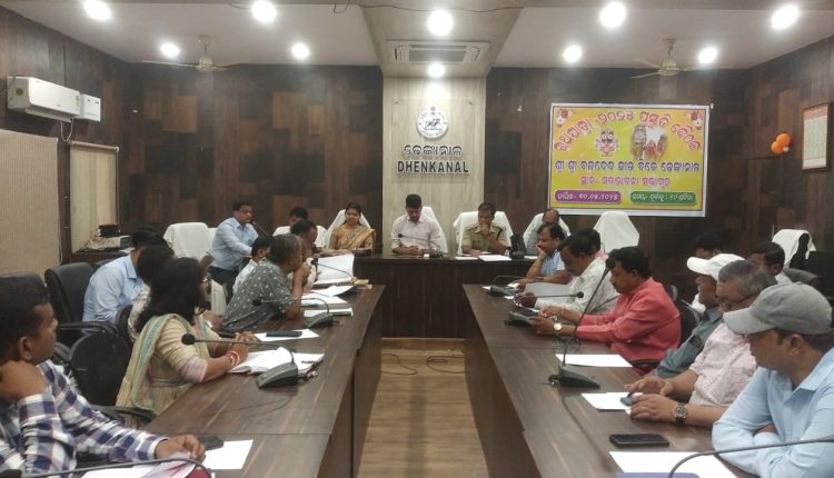ଢେଙ୍କାନାଳରେ ଶ୍ରୀ ସିଦ୍ଧ ବଳରାମ ଜୀଉଙ୍କ ରଥଯାତ୍ରା ଆସନ୍ତା ମାସ ୨୭ ତାରିଖ ଶୁକ୍ରବାର ଦିନ ଅନୁଷ୍ଠିତ ହେବ । ଏହି ଉପଲକ୍ଷେ ଆଜି ପୂର୍ବାହ୍ନରେ ଜିଲ୍ଲା କାର୍ଯ୍ୟାଳୟ ସଦଭାବନା ସଭା ଗୃହ ଠାରେ ଜିଲ୍ଲାପାଳ ଶ୍ରୀ ସୋମେଶ କୁମାର ଉପାଧ୍ୟାୟଙ୍କ ଅଧ୍ୟକ୍ଷତାରେ ଏକ ପ୍ରସ୍ତୁତି ବୈଠକ ଅନୁଷ୍ଠିତ ହୋଇଯାଇଛି । ରାଜ ପୁରୋଧାଙ୍କ ସମୟ ନିର୍ଘଣ୍ଟ ଅନୁଯାୟୀ ସମୟାନୁବର୍ତ୍ତିତା ପ୍ରତି ଧ୍ୟାନଦେଇ ରଥଯାତ୍ରାକୁ ସୁରୁଖୁରୁ ଓ ଶାନ୍ତି ଶୃଙ୍ଖଳାର ସହିତ ସମାପନ କରିବା ପାଇଁ ସେ ସମସ୍ତଙ୍କର ସହଯୋଗ କାମନା କରିଥିଲେ ।