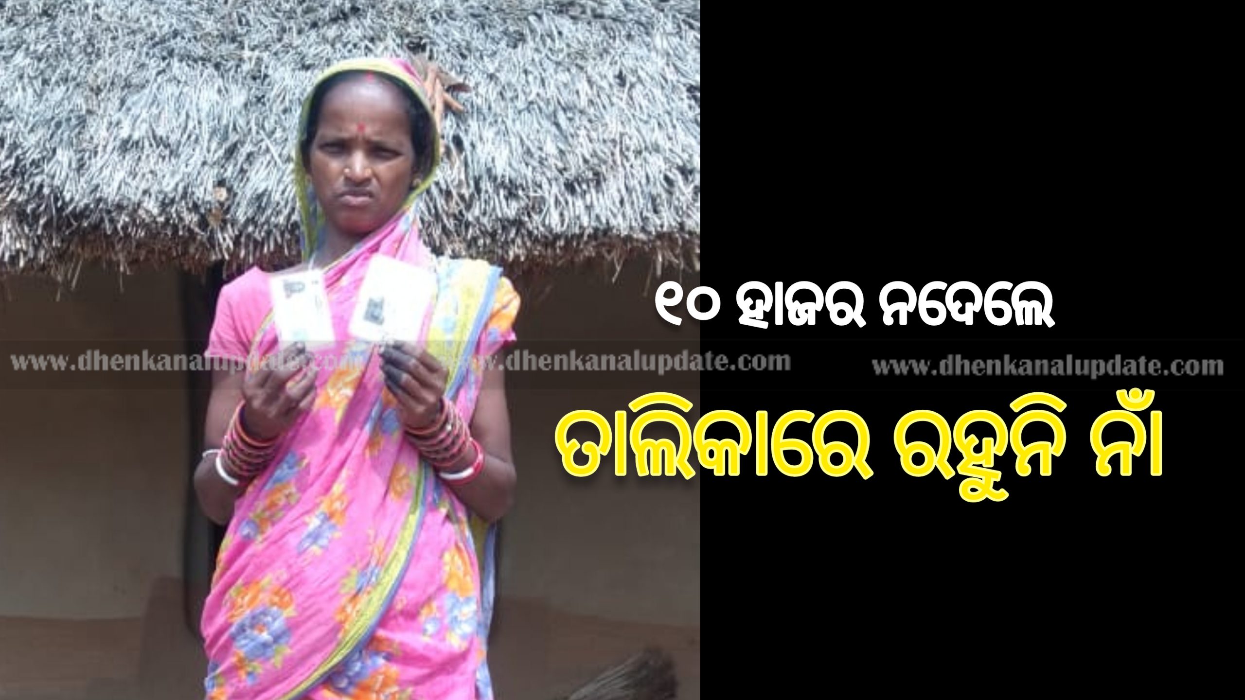 ଏହି ଭଳି ଏକ ଘଟଣା ଦେଖିବାକୁ ମିଳିଛି ଢେଙ୍କାନାଳ ସଦର ବ୍ଳକ୍ ବାଲ୍ୟମ୍ବା ପଞ୍ଚାୟତ ରାଇଡିହି ହରିଜନ ସାହିରେ ।ଉକ୍ତ ଅଞ୍ଚଳର ପୁଷ୍ପ ନାଏକ ଅନେକ ଥର ନିଜ ଘର ଖଣ୍ଡିଏ ପାଇଁ ଅନେକ ଦିନରୁ ଆବେଦନ କରିଛନ୍ତି କିନ୍ତୁ ୧୦ ହଜାର ନଦେବାରୁ ତାଙ୍କ ନାମ ଟି ହିତାଧିକାରୀଙ୍କ ଲିଷ୍ଟ ରେ ରଖା ଯାଉନଥିବାର ସେ ଅଭିଯୋଗ କରିଛନ୍ତି ।