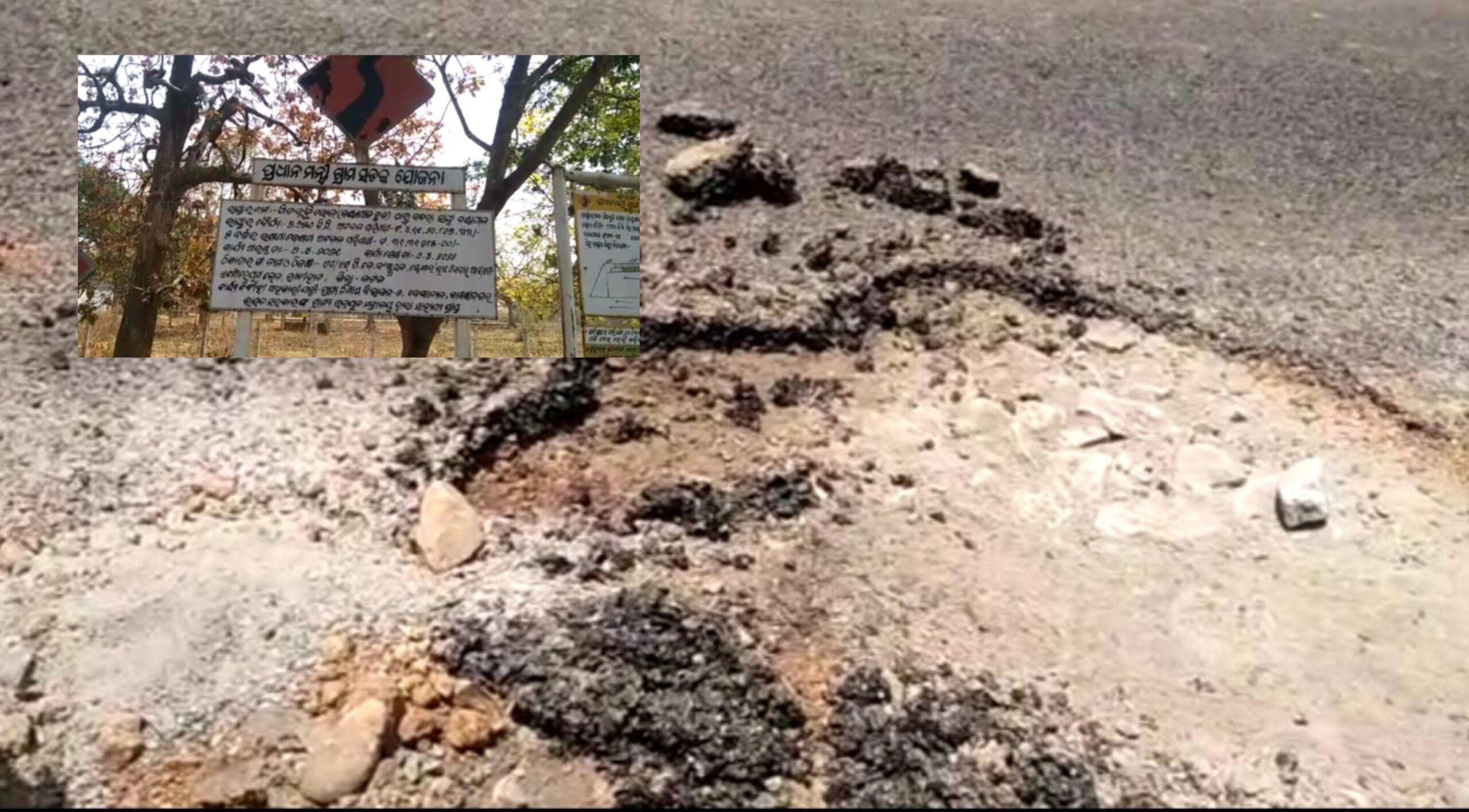 ପ୍ରଧାନମନ୍ତ୍ରୀ ଗ୍ରାମ୍ୟ ସଡକ ଯୋଜନାରେ ହେଉଛି ନିମ୍ନମାନର କାର୍ଯ୍ୟ ,କାର୍ଯ୍ୟ ନସରୁଣୁୁ ଉଠିଲାଣି ପିଚୁ !