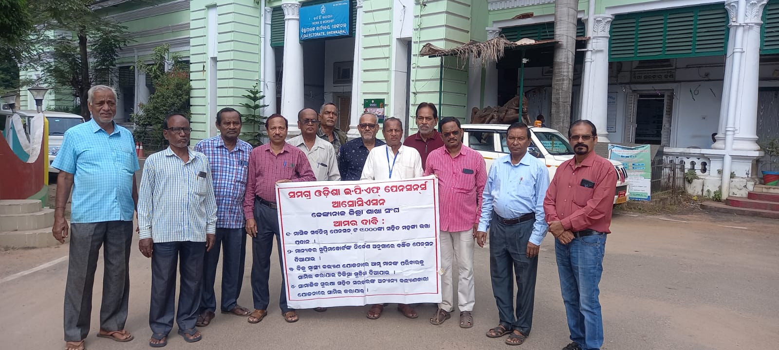 ଇ.ପି.ଏଫ୍ ପେନସନ ଭୋଗି ରାଜ୍ୟ ସଂଘ ଆହ୍ବାନ କ୍ରମେ ଆଜି ଇ.ପି.ଏଫ୍ ଦିବସ କୁ ଦାବି ଦିବସ ରୂପେ ଢ଼େଙ୍କାନାଳ ଜିଲ୍ଲା ଶାଖା ପାଳନ କରିଛନ୍ତି । ୧୯୯୫ ମସିହା ନଭେମ୍ବର ୧୬ ତାରିଖ ଠାରୁ ଇ.ପି.ଏଫ୍ ପେନସନ ଭୋଗି ମାନଙ୍କୁ କେନ୍ଦ୍ର ସରକାରଙ୍କ ତରଫରୁ ଅତି ନଗନ୍ୟ ପେନସନ ମାସିକ ୩୦୦ ଟଙ୍କାରୁ ୩୦୦୬ ଟଙ୍କା ଦେଉଥିଲେ ମଧ୍ୟ ଅଧିକ ପେନସନ ଭୋଗି ମାସିକ ୧୦୦୦ ଟଙ୍କାରୁ କମ୍ ପେନସନ ପାଇ ଅତି ଦନୀୟ ଅବସ୍ଥାରେ କାଳାତିପାତ କରୁଛନ୍ତି।