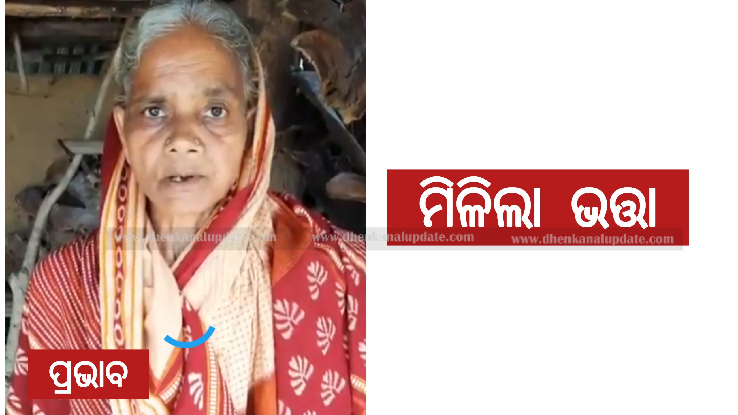 ଢେଙ୍କାନାଳ ଜିଲ୍ଲା କାମାକ୍ଷାନଗର ବ୍ଲକ୍ କଣ୍ଟାପାଳ ଗ୍ରାମର ଶାନ୍ତିଲତା ମହାଖୁଡ(୬୫ ), ସ୍ୱାମୀ ଆରପାରିରେ ।ପରିବାରରେ ଆଉ କେହି ନାହିଁ । ସରକାରୀ ଯୋଜନା ଅନୁଯାୟୀ ମାସକୁ ୫ କେଜି ଚାଉଳ ମିଳେ ।