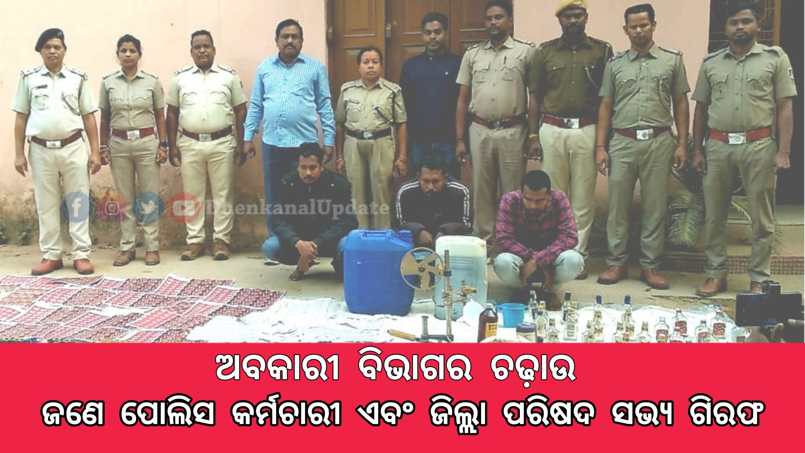 ନକଲି ମଦ ତିଆରି ଅଭିଯୋଗରେ ଜଣେ ପୋଲିସ କନେଷ୍ଟବଳ, ଜିଲ୍ଲା ପରିଷଦ ସଭ୍ୟଙ୍କ ସମେତ ଜଣେ ଗିରଫ