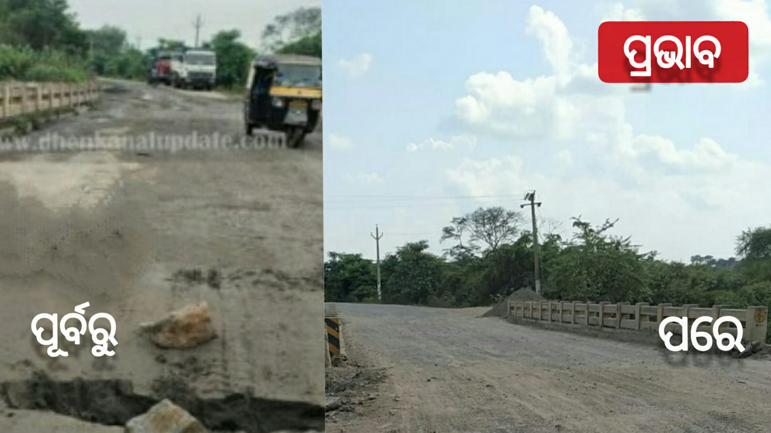 ଓଡ଼।ପଡ଼ା ବ୍ଳକ୍ ଗୁଡ଼ିଆକାଟେଣି ହିନ୍ଦୋଳ ପୂର୍ତ୍ତ ବିଭାଗ ରାସ୍ତା ପତଳା ନିକଟରେ ରେଙ୍ଗାଳି କେନାଲ ବ୍ରିଜ ରାସ୍ତା ୫ଫୁଟ ଦବିବାର ଘଟଣା ଗତ ୨୪ ଅଗଷ୍ଟ ରେ ଆମେ ପ୍ରସାରଣ କରିଥିଲୁ । ତେବେ ବର୍ଷା ପାଣି ଫାଙ୍କରେ ପଶି ବାଲି ଧୋଇ ହୋଇଯିବାରୁ ରାସ୍ତା ଦବିଯାଇଥିବା କୁହାଯାଉଛି । ତେବେ ଖବର ପ୍ରସାରଣ ପରେ ବିଭାଗୀୟ ଅଧିକାରୀ ଙ୍କ ଦ୍ଵାରା ରାସ୍ତା ର ମରାମତି ହୋଇଛି ।