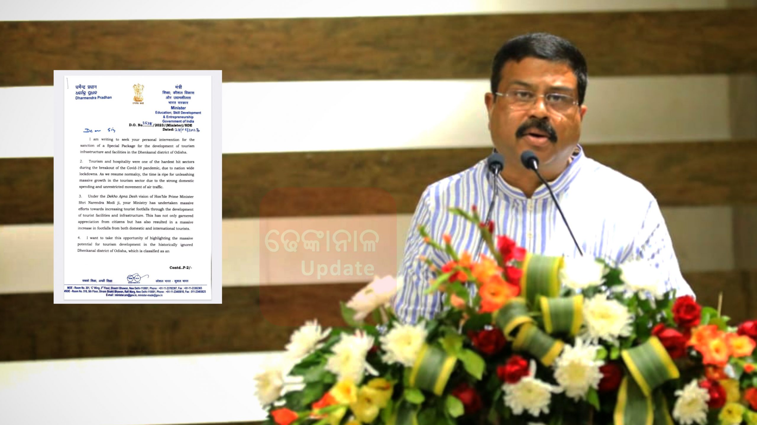 ଢେଙ୍କାନାଳ ଜିଲ୍ଲାରେ ଥିବା ବିଭିନ୍ନ ପର୍ଯ୍ୟଟନକ୍ଷେତ୍ର ନିମନ୍ତେ ସ୍ୱତନ୍ତ୍ର ପ୍ୟାକେଜ୍ ପ୍ରଦାନ ପାଇଁ କେନ୍ଦ୍ରମନ୍ତ୍ରୀ ଧର୍ମେନ୍ଦ୍ର ପ୍ରଧାନଙ୍କ ଚିଠି